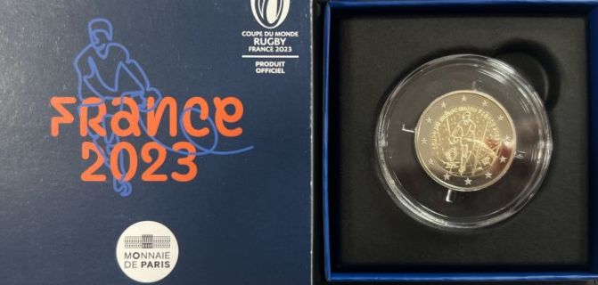 | FRA2fs23/2 | Francia | 2023 | Proof | Coppa del Mondo di Rugby in Cofanetto Fondo Specchio | | | 25.00 |  |