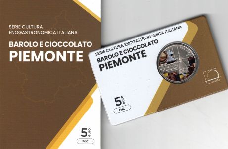 | ITA 5pie25 | Italia | 2025 | Fdc | 5 € Serie Cultura Enogastronomica - PIEMONTE Barolo e Cioccolato - METALLICO IN BLISTER | | | 45.00 |  |